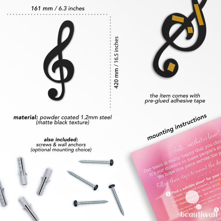 In the box of your order we include pre-glued adhesive tape on the item for the easiest fastest mountig option, screws and wall anchors if you need a sturdier mount, and detailed instructions to make the process as simple as possible.
