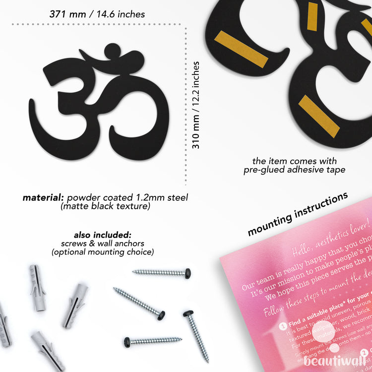 In the box of your order we include pre-glued adhesive tape on the item for the easiest fastest mountig option, screws and wall anchors if you need a sturdier mount, and detailed instructions to make the process as simple as possible.