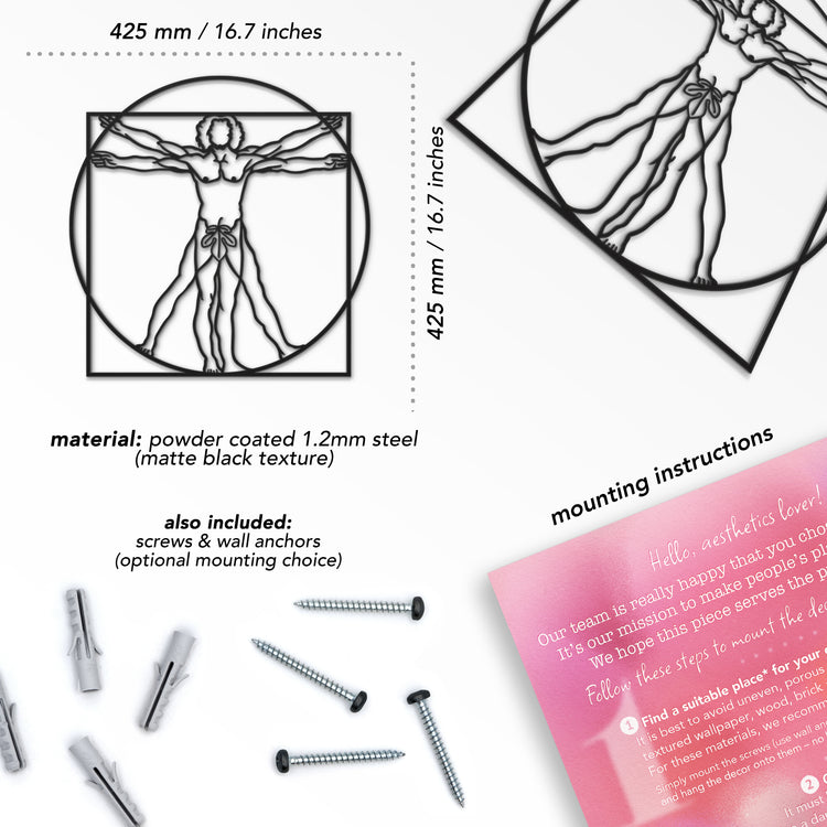 In the box of your order we include pre-glued adhesive tape on the item for the easiest fastest mountig option, screws and wall anchors if you need a sturdier mount, and detailed instructions to make the process as simple as possible.